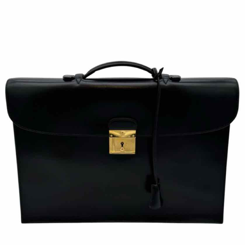 HERMES Box Calf Quirus Briefcase Black Gold HW
